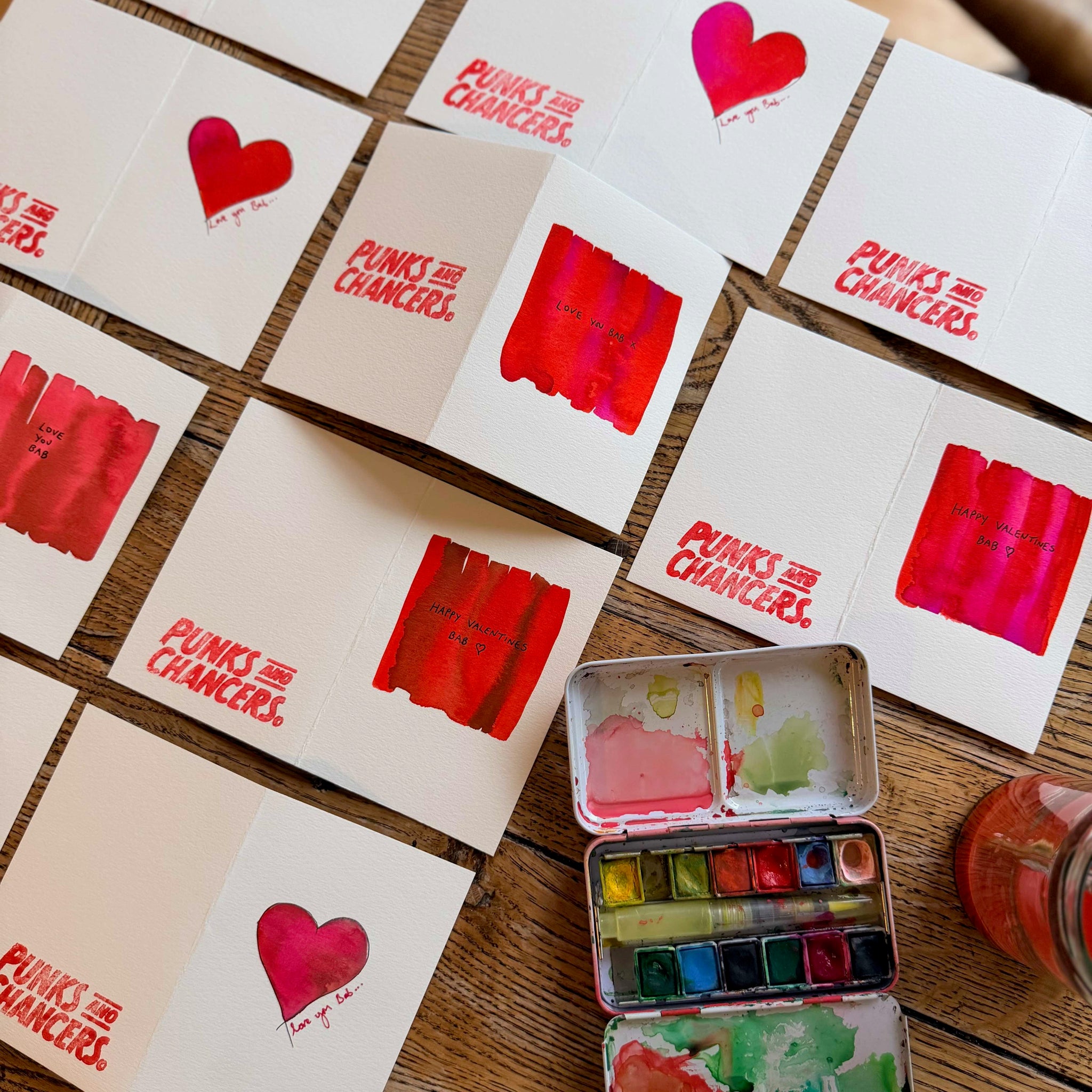 Hand painted cards on heavy watercolour paper with a thick cream envelope.