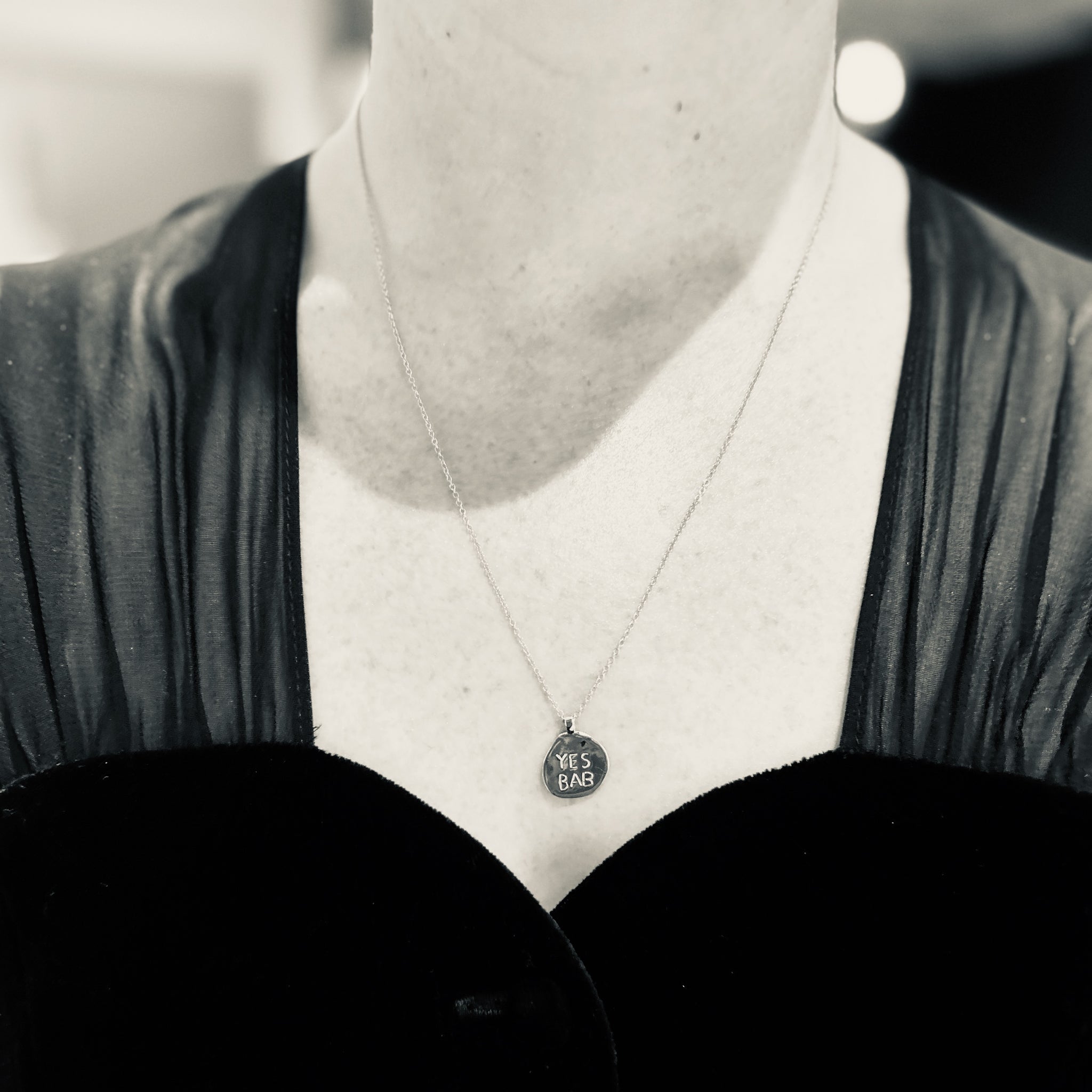 Solid .925 recycled sterling silver, 50cm chain length, packaged in a Punks and Chancers embossed eco gift box.  #YesBab . Also available in gold.