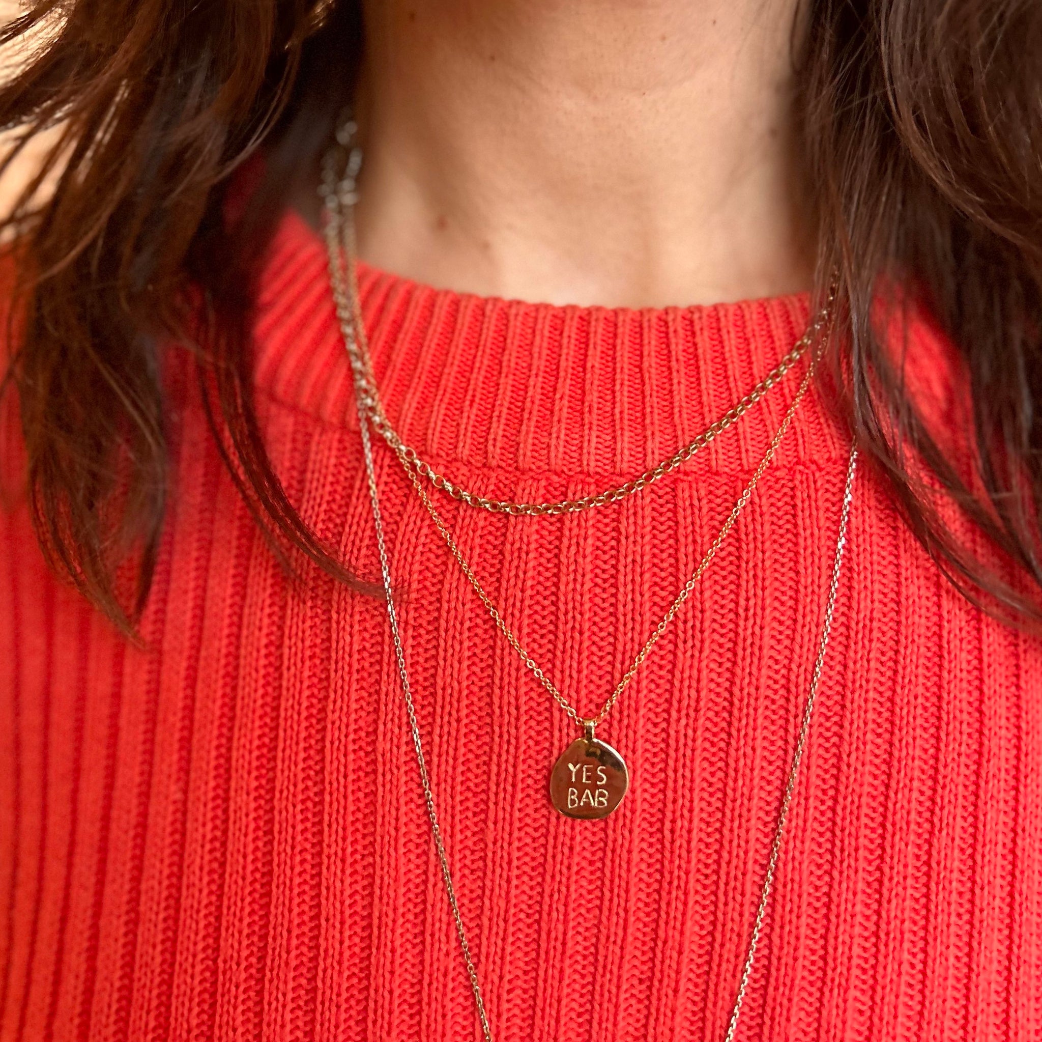 Solid .925 recycled sterling silver, 18ct gold plating, 50cm chain length, beautifully packaged in an embossed eco gift box. #YesBab . Also available in silver.